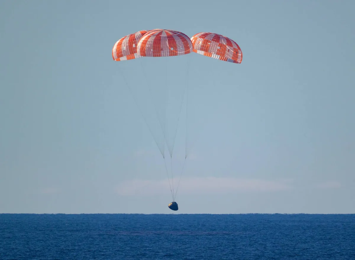 وسيتم استقبال الرواد كريستينا كوتش، وفيكتور غلوفر، وجيريمي هانسن، وريد وايزمان من قبل فرق الإنقاذ قبل نقلهم جوا إلى سفينة عسكرية أميركية لإجراء فحوصات طبية.واجتازت المركبة «أوريون» التي تحمل أربعة رواد فضاء عائدة إلى الغلاف الجوي للأرض، بنجاح اختبار درعها الحراري الذي يحمي الكبسولة التي تضم الطاقم من درجات الحرارة الحارقة.