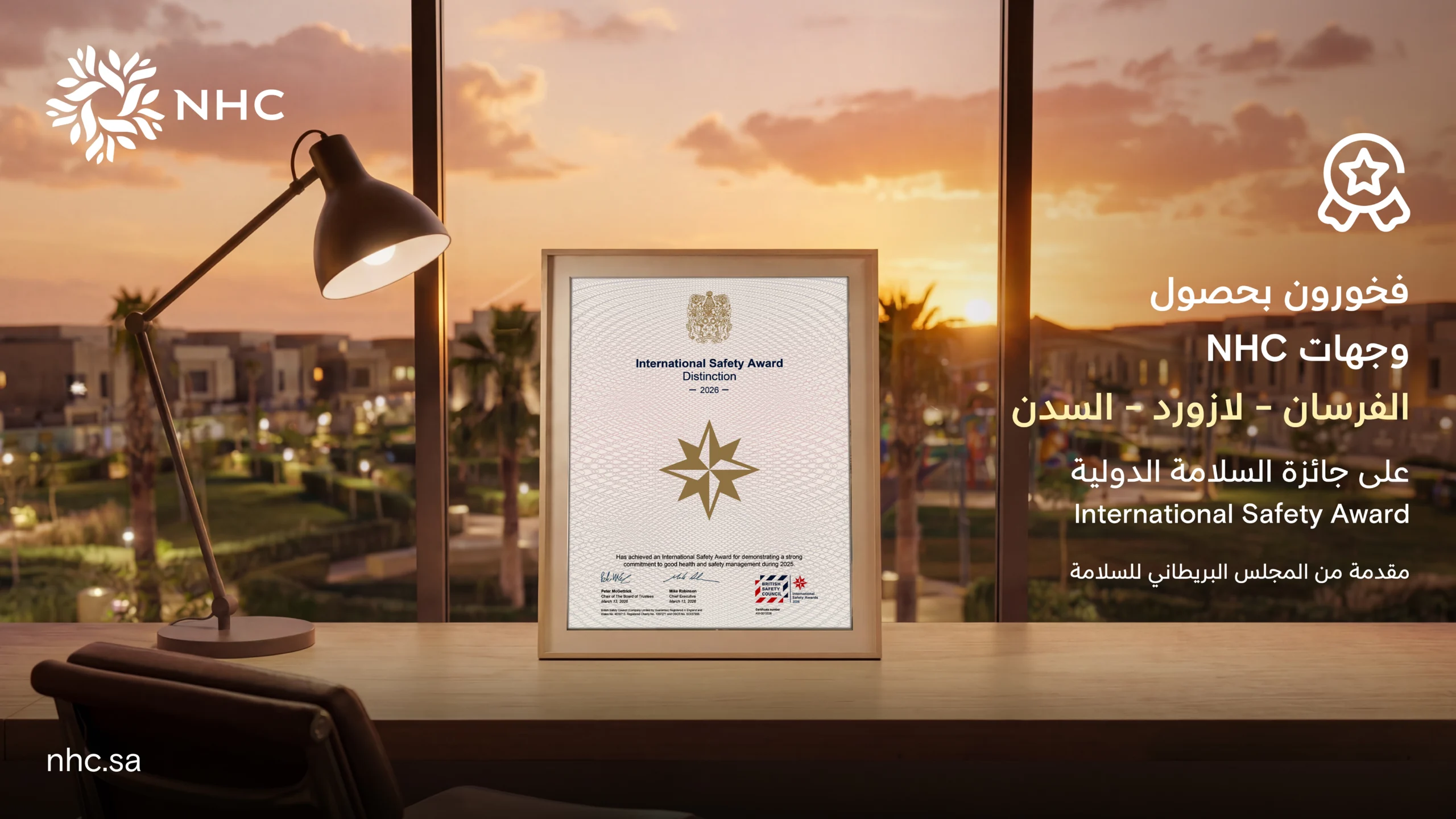 NHC has achieved a new milestone by winning 3 awards in the Excellence Level of the 2026 International Safety Award presented by the British Safety Council, for three exemplary projects in the Al-Fursan destination in Riyadh, the Al-Sudan destination in Jeddah, and the Lazurd destination in Khobar. This underscores its commitment to applying the highest standards of safety and occupational health in its urban destinations.